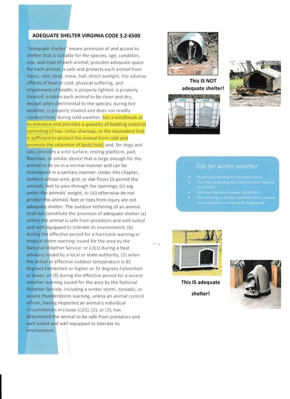 Adequate Shelter Virgina Code 3.2-6500 - Click here for more information
