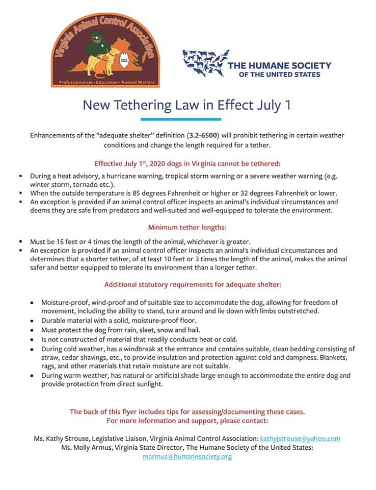 Adequate Shelter for Dogs - New Law July 1st, 2020